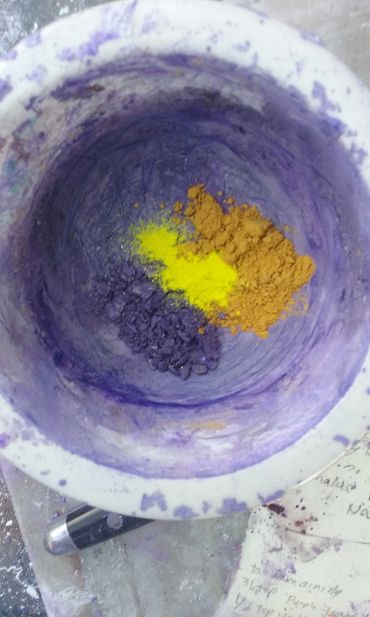 Making Casein Paint Part 2 Measuring, Making the Paste of dried pigment and water.