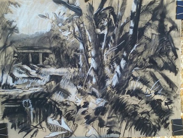 A value painting in charcoal. For pastel, a workable fixative spray alcohol based, or SpectraFix Spray made from Casein. The choice depends on the relative humidity of your painting area.